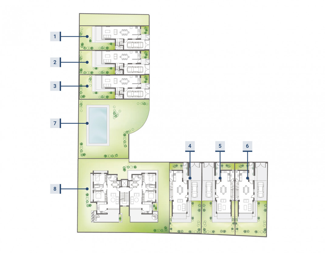 Homes at MIR Residences are positioned approximately 350 metres from the coastline and provide convenient access to Limassol’s coastal infrastructure. The development focuses on practical layouts, contemporary architecture and a private residential format with only a small number of homes.